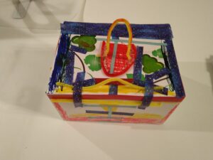 【段ボールの彼の作品・今はお菓子が沢山入っています。】